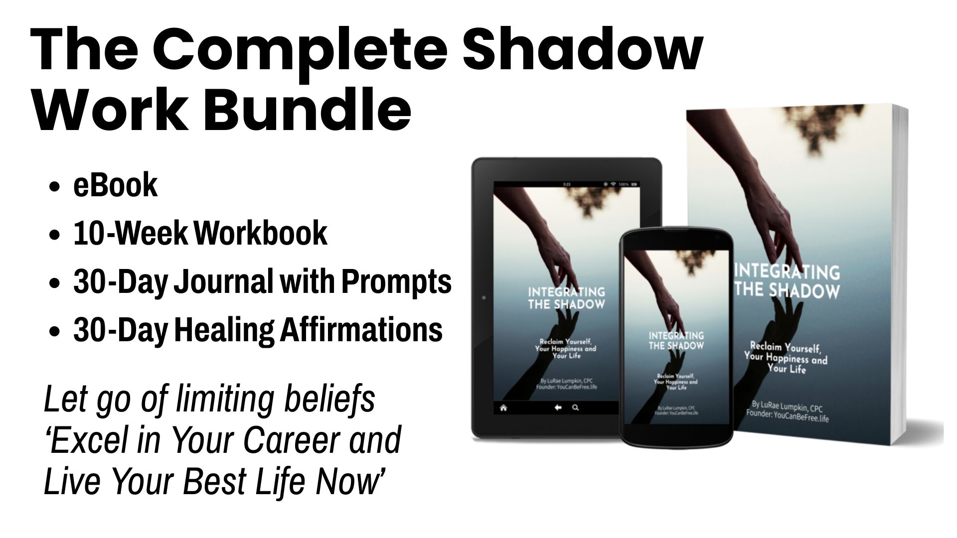 I've created a Shadow Work Bundle. It includes a Quick Start Guide that maps out the process, an eBook to explain the concepts, a journal with targeted prompts to uncover hidden beliefs, 30 days of carefully crafted affirmations to rewire your thinking, and a 10-week workbook that walks you through shifting from limiting paradigms to empowering beliefs.